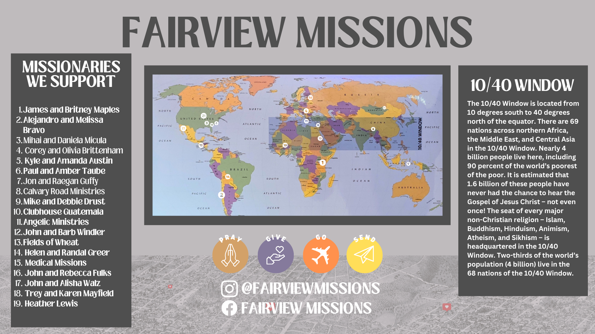 For more information and how to get involved with local and foreign missions, contact Missions Bob our Missions Director!